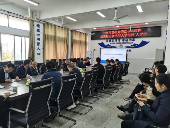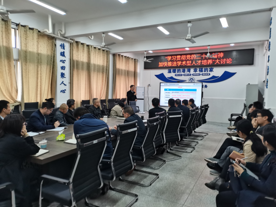 2023年3月6日上午9点,beats365在新二教A305会议室开展了以“学习贯彻党的二十大精神 加快推进学术型人才培养”为主题的大讨论。讨论会由经理张志军主持。全体院领导、系(中心)主任、副主任、教师党支部书记、副书记、全体教务室人员以及全体辅导员参加了本次讨论会,审核评估领导小组常务副组长刘泽华参加了会议并作了题为“审核评估与学术型人才培养若干思考”的报告。