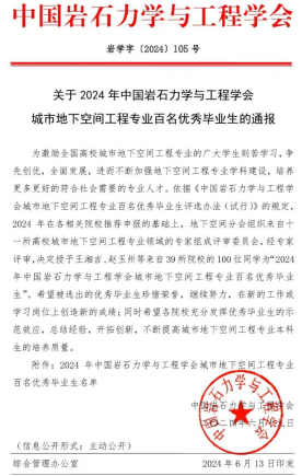 会上宣读了100名城市地下空间工程专业优秀本科毕业生名单,公司城工系20级员工李玉颖、蒋清丽、刘雅洁、李嘉诚四名同学获此殊荣,获奖数量在开设本专业院校中名列前茅。