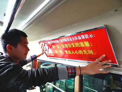 宣扬雷锋精神活动每年都在做,样式却呆板单一,受众也只是员工。为了把今年的公益活动做得与众不同,青年志愿者分队的同学做了大量的前期准备工作,反复制定了几种活动策划,最终确定了利用人群相对密集、多样的城市公交系统开展这次活动。活动于早上八点正式开始,青年志愿者兵分两队,一队在衡阳汽车总站分发"雷锋三月,意暖公交"的宣传单,向市民讲解雷锋精神的内涵以及学习雷锋精神的重要性;另一队在公交车上贴上文明标语并做公益演讲,向群众普及公交防盗,公交事故中自我保护措施等知识;倡导公交道德,鼓励大家积极给老弱病孕残让座;为乘客讲述雷锋故事,带大家感受平凡人的不平凡。