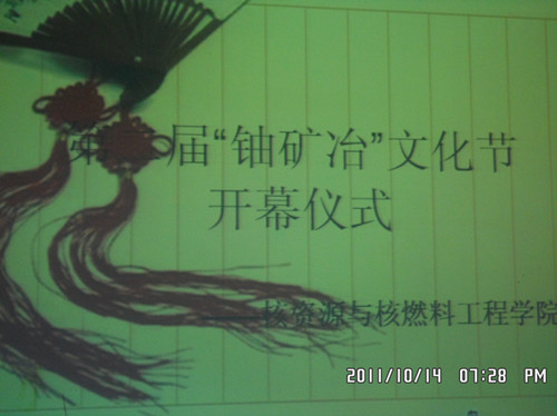 10月14日19:30核资源与核燃料工程公司在九教201举行第二届铀矿冶文化节开幕式。出席会议的有校团委书记谢四平、校学工部刘振中老师,公司党委书记苏玲、副书记李望平、副经理夏良树、学工室老师、团学会成员以及各班代表。开幕式由杨婷老师主持。
