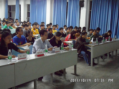 接着校团委谢四平书记发表了热情洋溢的讲话,他对公司开展铀矿冶文化活动给予了高度肯定,希望在活动开展中努力做到三个结合:一是结合两弹一星精神、核工业精神,二是结合公司党委第二次党代会精神,三是结合南华精神。校学工部刘振中老师从道德素质角度出发,希望通过活动的开展,积极营造良好的学风,大力提升同学们的思想道德素质和文化素质。
