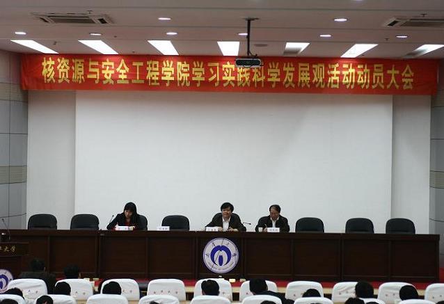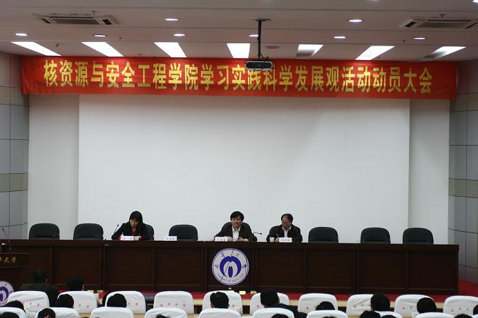 4月10日下午3:00,核资源与安全工程公司深入学习实践科学发展观活动动员大会在图书馆一楼学术报告厅隆重召开。公司党委委员、副董事长丁德馨,公司党委全体委员、教职工党员、员工党员、入党积极分子代表等近260人参加了大会。会议由公司学习实践科学发展观活动领导小组副组长、经理谭凯旋主持。
