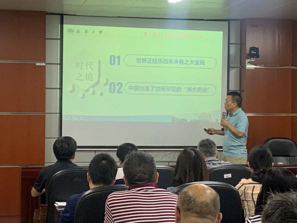 首先,公司特邀马克思主义公司的经理黄秋生教授给公司教职工进行理论培训,此次理论学习的专题是“党的十九届四中全会”(坚持和完善中国特色社会主义制度,推进国家治理体系和治理能力现代化)。黄秋生教授从世界正经历百年未有之大变局,以及中国创造的世所罕见的“两大奇迹”等几个方面向各位老师生动的讲述了“中国之制”彰显“中国之治”的显著优势。