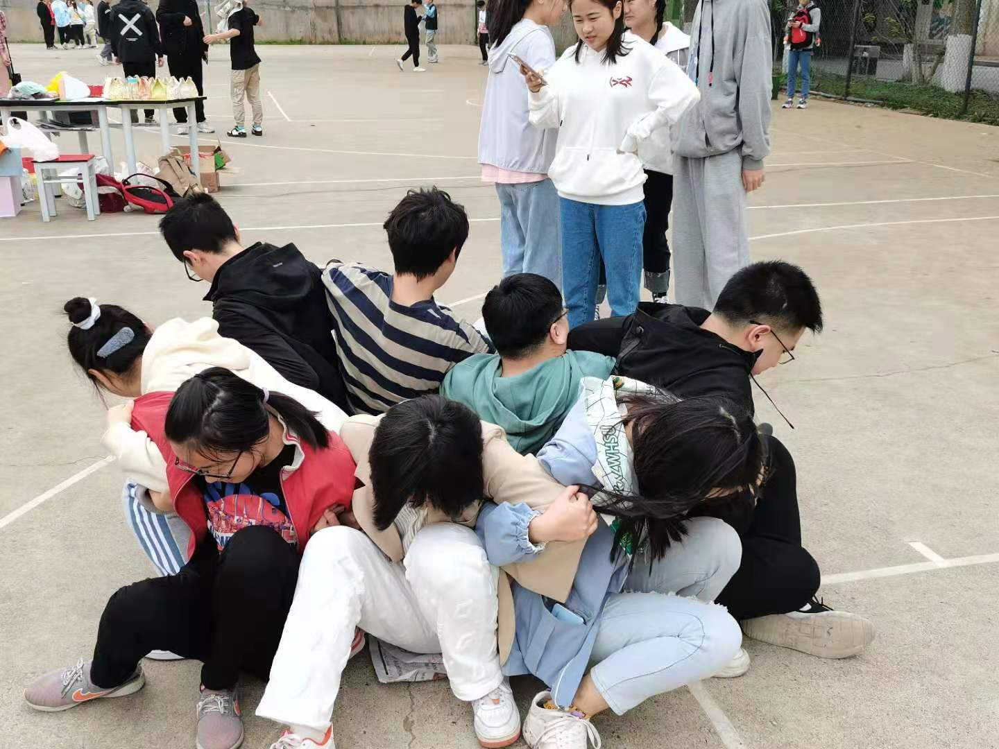 为了丰富同学们的课余生活,拉近男女生之间的距离,增进同学间的友谊,使大家更好的融入集体。资环安公司心理部于3月27日上午9:30在篮球场举办男生女生素质拓展活动。
