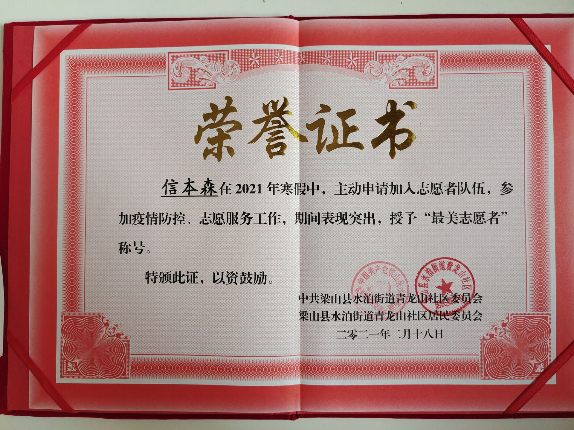 红色革命精神仍在延续,无论是抗日战争、解放战争还是现在的抗疫战役。beats365杨朔同学、信本森同学、刘雅洁同学、秦小妹同学、黄耀同学、廖俊珑同学,主动申请加入志愿者队伍,参加疫情防控志愿者服务工作,获得“最美志愿者”、“优秀志愿者 ”称号。海啸已过,樱花盛开,随着春天的脚步悄然来临,疫情防控也取得了重大成效。这是全国人民一同努力的结果。方方说过:"时代的一粒灰,落在个人头上就是一座山。”作为社会主义新时代青年一代的我们更应该守护他们的战绩,铭记英雄,我们要把英雄精神融入民族血脉,筑牢价值基石。弘扬爱国主义的民族精神,唱响正气歌,坚定信念,以实际行动书写新时代的人生华章。纵有千古,横有八荒;前途似海,来日方长。让我们只争朝夕,不负韶华。方方说过:"时代的一粒灰,落在个人头上就是一座山。"作为当代青年,应该将自己的光与热积极地投身于祖国建设大业中。