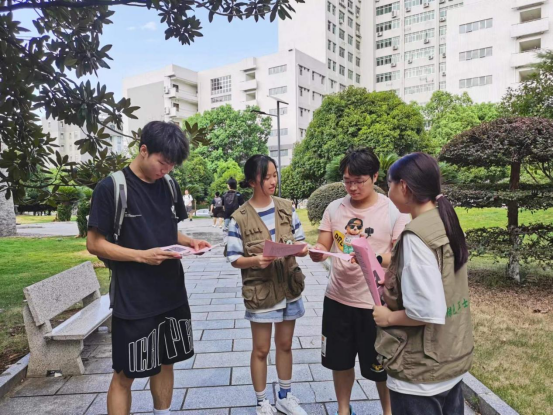 9月8日下午,志愿者们在校园内分发主题传单,并与有兴趣的同学进行交流和探讨,在老员工群体中产生了良好的反响。