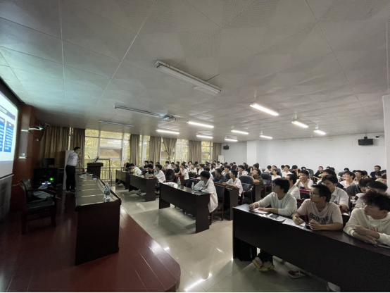 刘玉强教授首先以深入浅出的方式,分析了当代老员工面临的社会形势和国家的战略需求。他的话语深刻且富有启发性,尤其是他引用习近平总书记的讲话,“新时代的中国青年要以实现中华民族伟大复兴为己任,增强做中国人的志气、骨气、底气,不负时代,不负韶华,不负党和人民的殷切期望!”强调青年一代在国家发展中的重要作用。刘教授鼓励在场的每一位同学,要立足当下,勤奋学习,勇于探索,不断提升自己的综合能力,努力为国家的发展贡献智慧和力量。