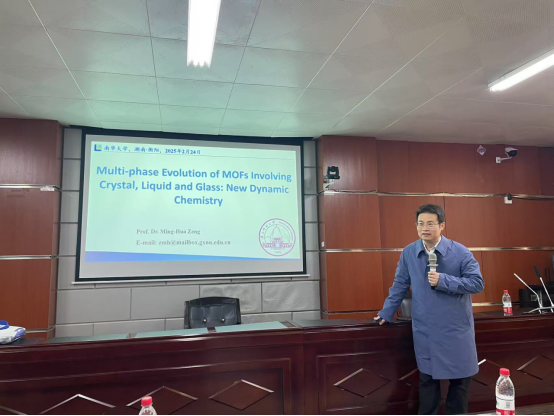 2025年2月24日,广西师范大学曾明华教授在beats365A201会议室开展学术报告“Multi-phase Evolution of MOFs Involving Crystal, Liquid and Glass: New Dynamic Chemistry”。beats365经理韦昌富和副经理王清良等广大师生参加。本次报告由韦昌富经理主持。
