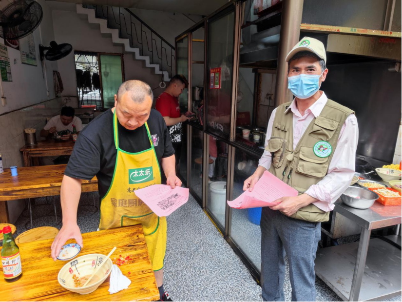集体活动后,张晓文和唐东山带领衡阳绿雁大队成员进入和平小区,向市民散发“减塑限塑”宣传单并进行宣讲活动,进一步唤醒市民的环保意识。