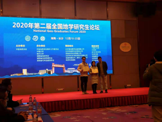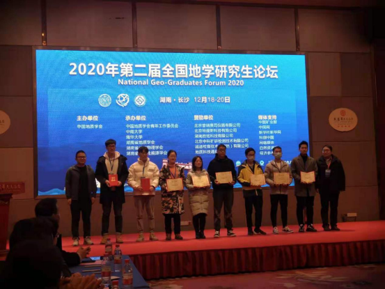 公司地质资源与地质工程牛苏娟、周霞飞、王升、刘威、肖策、龙淑琴等研究生围绕生物环境协同演化研究、地球动力学过程与构造-岩浆响应、水工环与城市地质、亚热带资源环境遥感等专题做了口头报告。本届论坛共选出了30余名“优秀报告奖”,公司王升和牛苏娟两位同学在众多研究生中脱颖而出获得了该奖项。