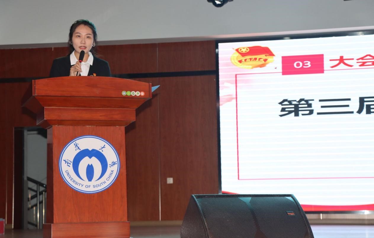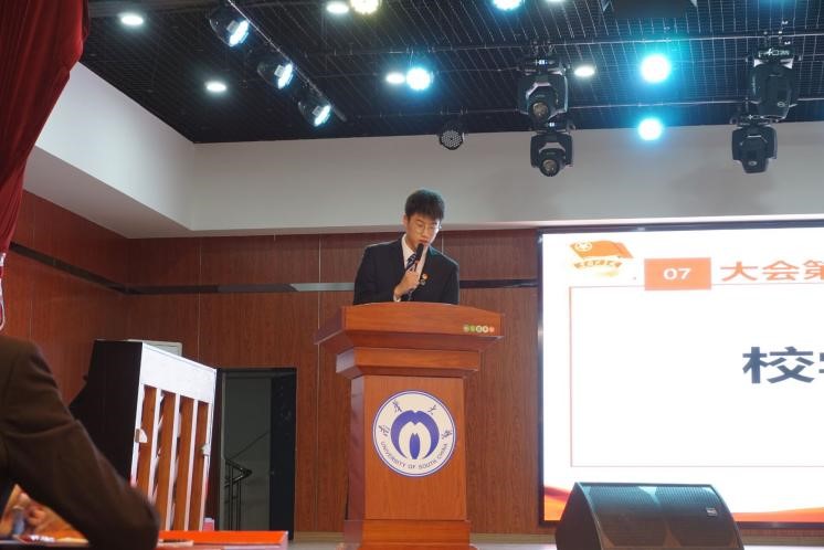 第三届员工会主席戴浩橦同学从“工作的回顾与总结”、“对新一届员工会的工作展望”两个部分向大家做出第三届员工会的工作总结报告。首先介绍了上一年度学风、寝风、员工权益维护和心理健康等五个方面的发展成果,并且对于在校运会中取得的诸多好成绩表示肯定。其次表达了对新一届员工会在工作方面的展望:不忘初心,牢记使命;身体力行,贯彻落实,深化改革;塑造形象,建设自身,乘风破浪。
