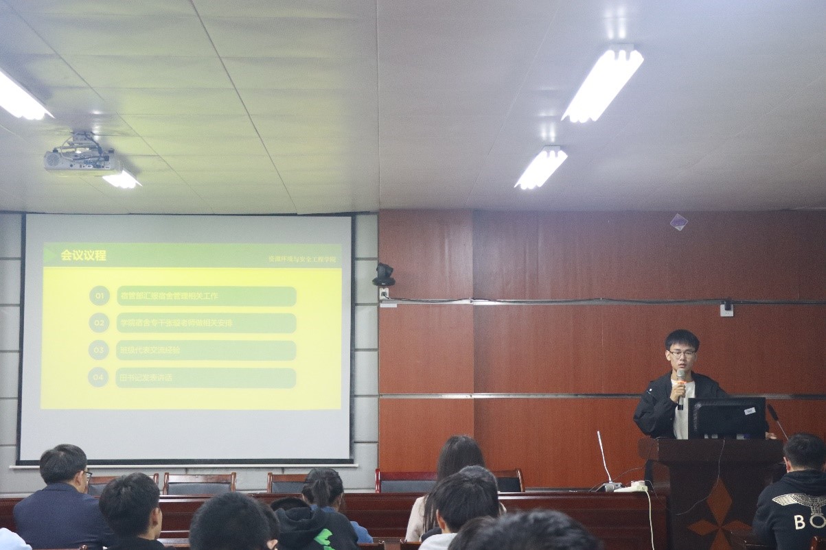 大会第三项,班级代表交流经验。城工191班生活委员,提到了自觉的重要性,宿舍卫生不仅要靠每周的大扫除,更重要的是日常维护;安工212班的生活委员,以自身宿舍为例表示作为新生仍旧保持着高中的严谨作风,针对宿舍公共区域采用分配原则,可以更好地保证宿舍卫生也便于追责。城工201班宿舍的寝室长,定时监督班级其他宿舍的卫生打扫,同时向宿管部查询本班宿舍卫生检查的结果。三位同学从不同的方面以不同的方法为我们分享了经验,值得我们借鉴。