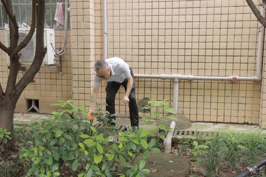 本次“爱校”卫生活动主要包括三方面:捡拾区域内的白色垃圾等其他废弃物;清除杂草、枯枝败叶以及外墙面、电线杆、树木、篮球架上的“牛皮藓”;清扫的垃圾集中堆放,保持垃圾箱周围干净,方便统一清运。尽管需要清扫的地方很多,“ 牛皮藓”分布散落毫无规律可言,老师和同学们依旧勤勤恳恳努力清扫,不放过任何一个角落。