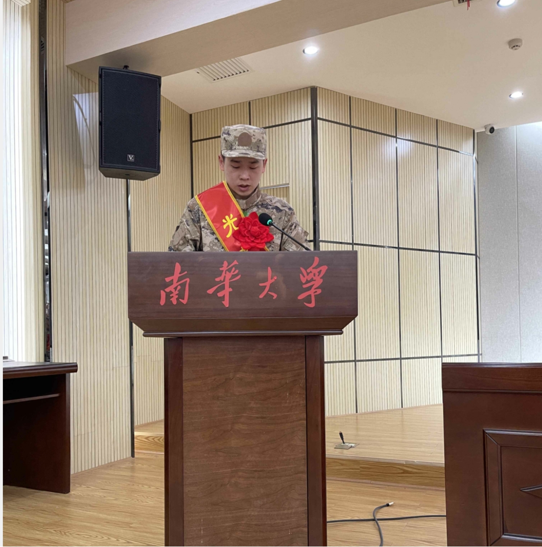 蒋怀志同学作为本次入伍老员工代表进行发言。他即将加入某部坦克兵部队,携笔从戎成为一名坦克兵种战斗员。他在发言中说,自己和大多数同学一样,从小对军人有崇高的敬意,对部队有着无限向往,这份敬意与向往也一直深藏在心中。部队纪律严明、训练艰苦,这些都是即将要面对的考验,也是磨炼意志品格的大好机会,将无悔于自己的选择,亦无悔于自己的人生,会非常坚定自己的选择,满怀激情地追逐自己的梦想。自己要学会敢于接受挑战,勇于吃苦,向理想迈步!最后,他代表入伍员工承诺,必将珍惜身穿戎装的机会,入伍后刻苦训练,服从命令,报效祖国,彰显南华学子风采。