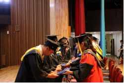在副经理贺桂成、徐守龙分别宣读博士、硕士及学士学位授予决定后,进入学位授予仪式。由全体院领导和系主任为毕业生颁发学位证书、拨流苏,拨穗以彰,正冠以誉。