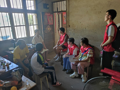 在村干部的陪同下,同学们走访留守儿童家中,辅导暑期作业,宣传防溺水,防性侵,禁毒等相关知识;帮助敬老院的老人完成社保认定,给老人们带去陪伴与欢乐;组织召开青春屋场恳谈会,讲述了烈士罗子平把一腔热血,无私地奉献给了人民,奉献给了中国的革命事业的故事。