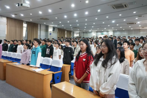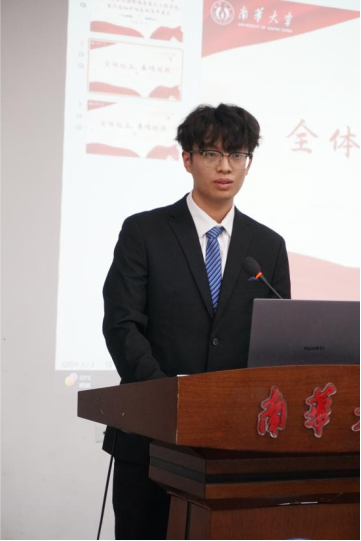 主题报告结束之后,谢佳豪同学宣读了践行地质“三光荣”精神、践行地质“四特别”精神、核工业精神、新时代核工业精神倡议书。
