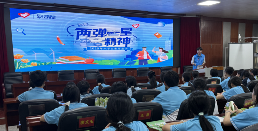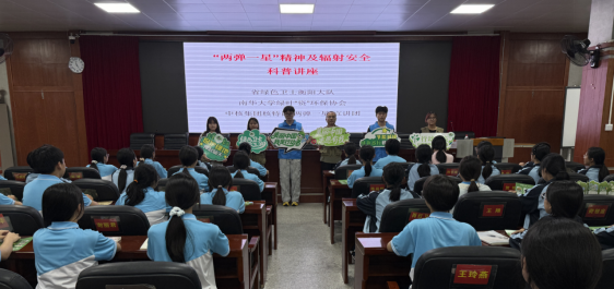 近日,湖南省“绿色卫士下三湘”系列活动走进衡阳市实验中学,beats365核特岗“两弹一星”宣讲团携手绿色卫士衡阳大队,为150余名学子带来了一场融合“红色传承”与“绿色理念”的科普讲座,在青少年心中播撒科学与生态文明的种子。