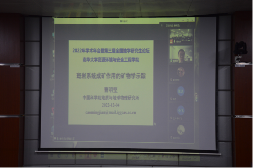 会场邀请了来自中国科公司地质与地球物理研究所的国家自然科学基金优秀青年基金获得者曹明坚研究员和来自中南大学的Lemdjou Yanick Brice博士,分别做了题为“斑岩系统成矿作用的矿物学示踪”和“Petrology, geochronology of the felsic and mafic rocks in the Adamawa-Yadé domain, Central African Fold Belt and their implications for tectonic evolution”的主题报告。17位地质资源与地质工程研究生分别围绕“华南岩石圈演化与成矿作用”、“矿产资源勘查与评价新理论、新方法”、“放射性环境修复”、“高放废物地质处置”、“火山作用与碳循环”等5个专题做了口头报告。