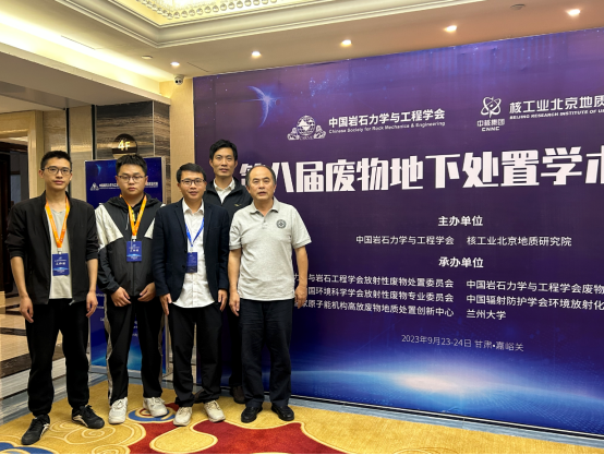 公司唐振平研究员带队参会,资源勘查工程系主任段先哲和系副主任韩世礼以及硕士研究生贵仁高和汪佳伟参加了此次会议。段先哲和汪佳伟分别做了题名为《甘肃北山深部地下水中铀络合物形态的地球化学研究:对高放废物安全处置的启示》和《多场耦合作用下深部花岗岩巷道蠕变规律数值模拟》的学术报告。会议期间举行了中国岩石力学与工程学会废物地下处置专业委员会换届大会,段先哲当选为第五届专委会委员。