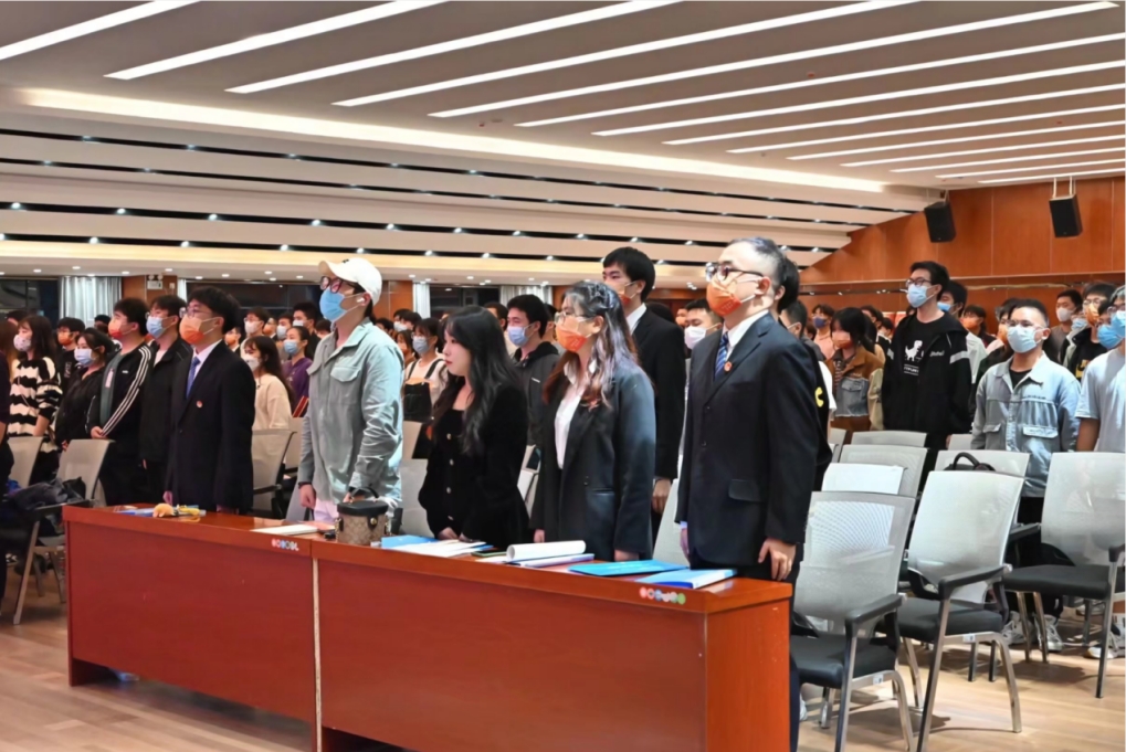 接着由第五届院团委常务副书记陈佳瑶领誓,进行了新任团委、员工会、学社联员工干部宣誓活动。