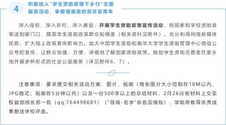 为贯彻落实党的二十大精神,深化资助育人和立德树人的根本任务,2024年寒假期间,一项旨在普及与深化农村地区员工资助政策认知的“员工资助政策下乡行”志愿服务活动在资环安学子中如火如荼地展开。此次活动从2024年2月15日开始,通过线下线上相结合的形式开展,既阐明了资助政策的意义和目的,又让每一位贫困学子都能感受到国家和社会的关怀和支持。活动于2月24日圆满完成。