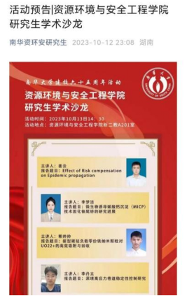 本学位授权点通过组织教师、员工走出去参加学术交流,举办铀矿冶文化节、学术沙龙等活动积极邀请国内外相关领域知名学者、专家、行业领袖亲临学校开展学术交流开拓教师、研究生学术视野、促进学术交流、推动创新实践,2023年,我学位授权点邀请中国矿业大学黄炳香教授、中核集团王海峰教授、核工业地质研究院王驹研究员等举办学术交流活动30余次。