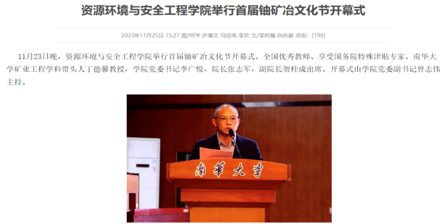 (4)厚植家国情怀,传承南华精神,深入推进文化育人。将核工业、铀矿冶精神融入公司产品各环节,定期举办先进事迹报告会,大力创作爱国主义题材的校园文化作品,引领师生在爱国报国文化的浸润中厚植家国情怀,勇担时代责任;依托校史馆、图书馆等,持续开展南华精神教育,加大对优秀员工、优秀科研工作者的宣传,以鲜活案例诠释南华精神,尤其是以学科带头人丁德馨教授的典型模范为学习对象,引导广大师生勤勉务实、甘于奉献。