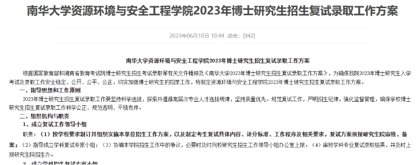 2023年,根据教育部及湖南省教育厅等有关文件,矿业工程学科制定详细的复试工作方案,并对复试工作在公司网站及时公布。学科坚持“按需招生、德智体全面衡量、择优录取、宁缺毋滥”的原则;坚持公平、公正、公开的原则,做到政策透明、规则公平、程序公正、结果公开、监督机制健全;坚持建立健全“随机确定考生复试次序”、“随机确定导师组组成人员”、“随机抽取复试试题”的“三随机”工作机制;坚持发挥和规范导师在复试选拔中的作用,加强导师遴选和培训,强化保密意识、责任意识和法治意识。并提高导师运用新技术、新手段科学规范选拔人才的能力等原则下,学科按照文件要求,成立复试工作领导小组、工作小组及学科专业复试专家小组,在确保安全性、公平性和科学性的基础上,统筹兼顾、严格管理,稳妥做好完成2023年博士、硕士研究生复试录取工作。