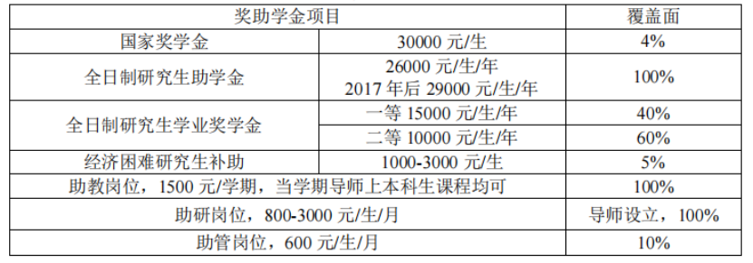 表一 博士研究生奖助学金体系