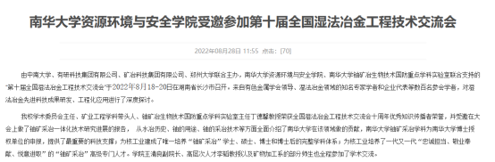(4)厚植家国情怀,传承南华精神,深入推进文化育人。将核工业、铀矿冶精神融入公司产品各环节,定期举办先进事迹报告会,大力创作爱国主义题材的校园文化作品,引领师生在爱国报国文化的浸润中厚植家国情怀,勇担时代责任;依托校史馆、图书馆等,持续开展南华精神教育,加大对优秀员工、优秀科研工作者的宣传,以鲜活案例诠释南华精神,尤其是以学科带头人丁德馨教授的典型模范为学习对象,引导广大师生勤勉务实、甘于奉献。